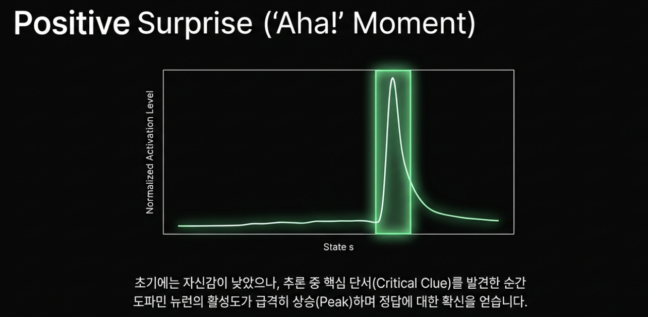 - Positive Surprise: 기대하지 않았는데 정답을 맞혔을 때 활성화되는 뉴런 (학습의 기회).
